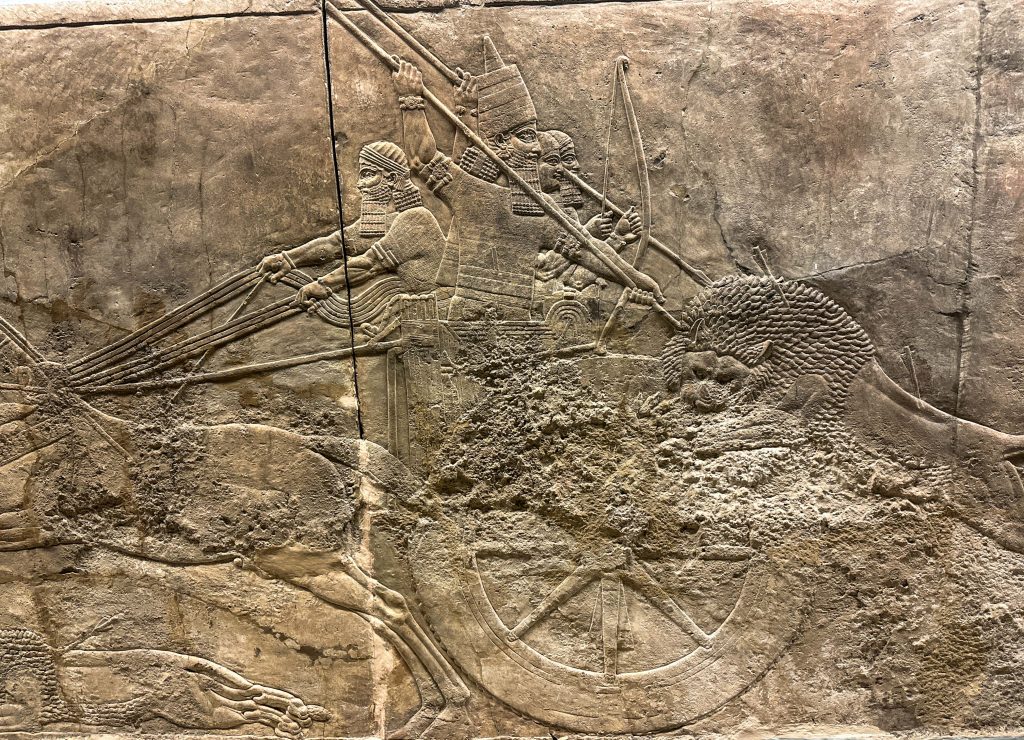 This return from the hunt, marked by rituals and symbolism, reflects the Assyrian belief in the king’s duty not only to conquer but also to maintain order. The lion, once a symbol of chaos and danger, lies defeated at the king’s feet—a powerful reminder of the monarch’s role as the ultimate civilising force over nature’s wild forces.