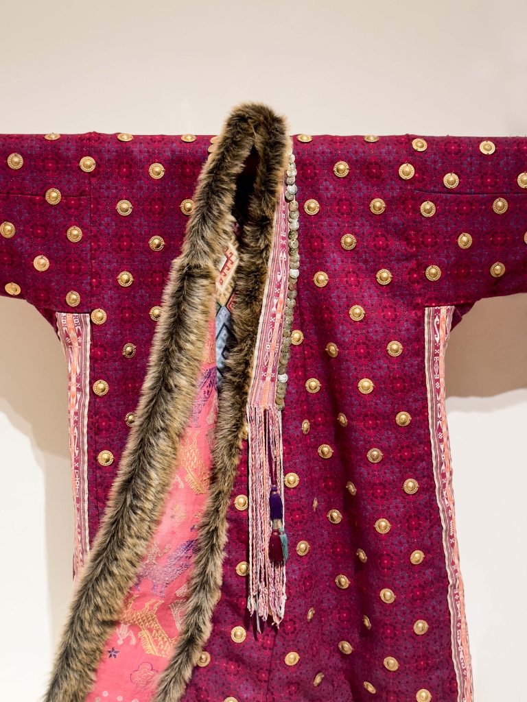 The recreation was adorned with intricate metallic embroidery, a feature that mirrored the rich detailing found on the ancient Achaemenid robes. Metallic threads were used to create intricate designs and motifs, each one painstakingly stitched to reflect the grandeur of the original costume.