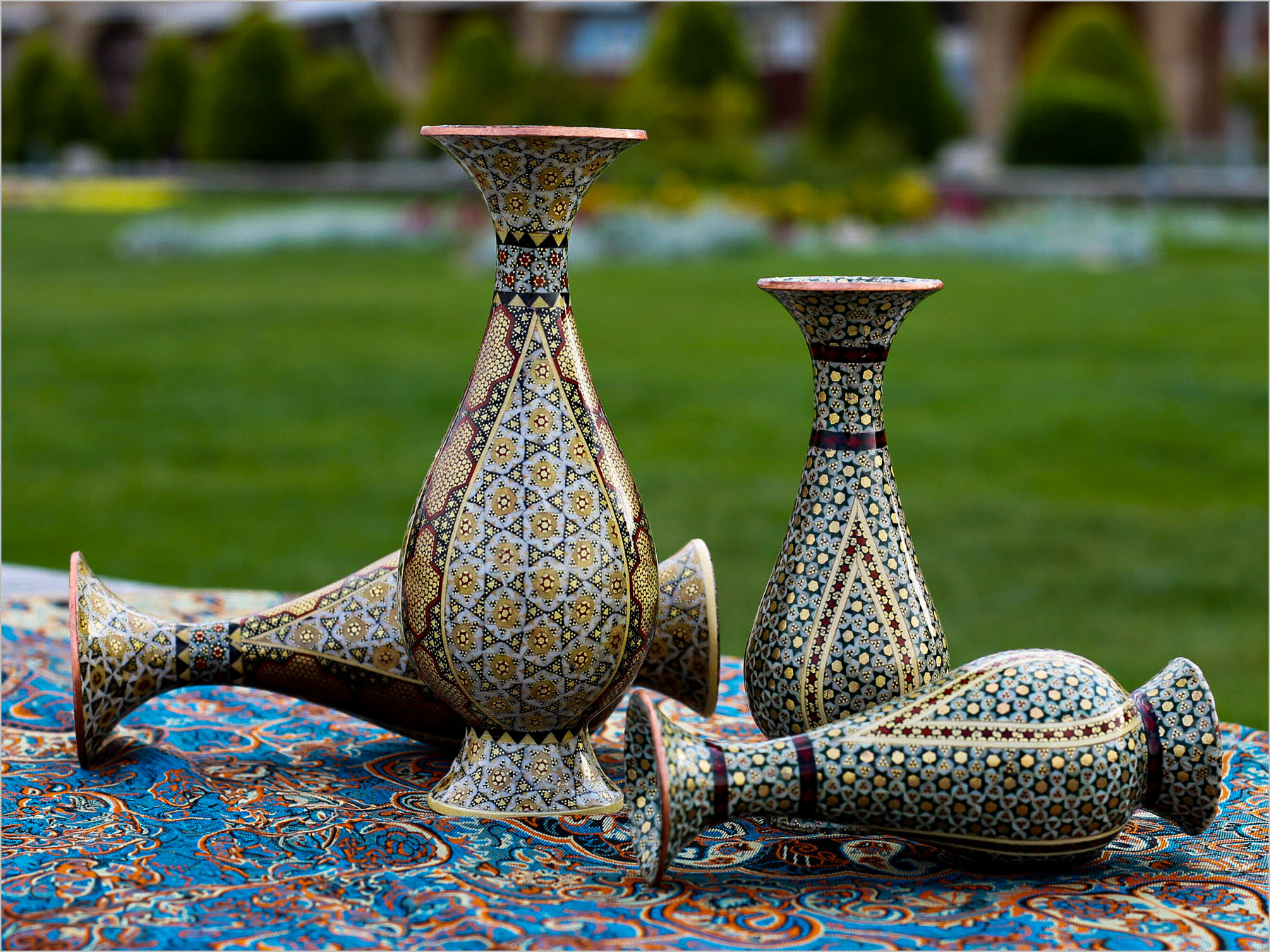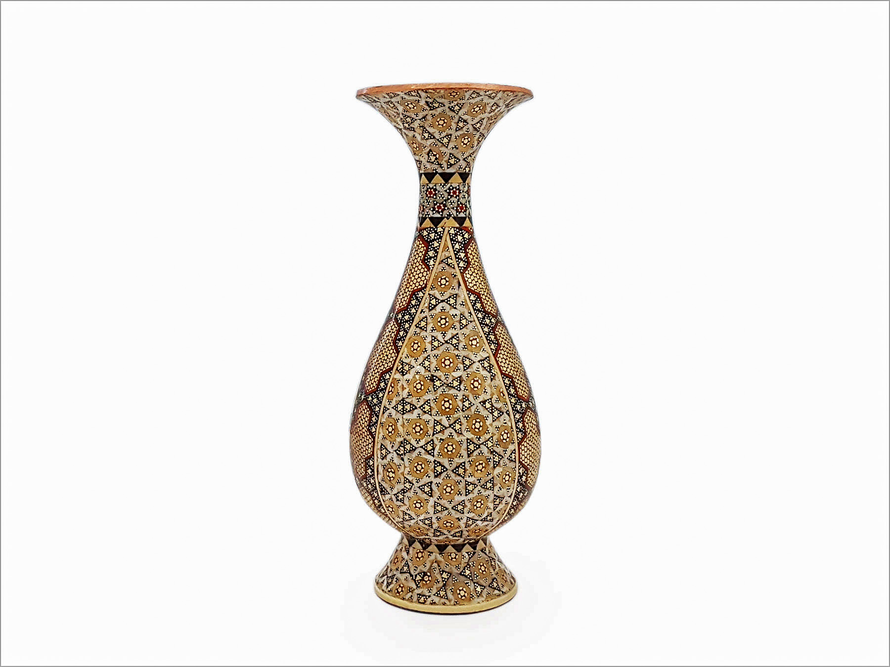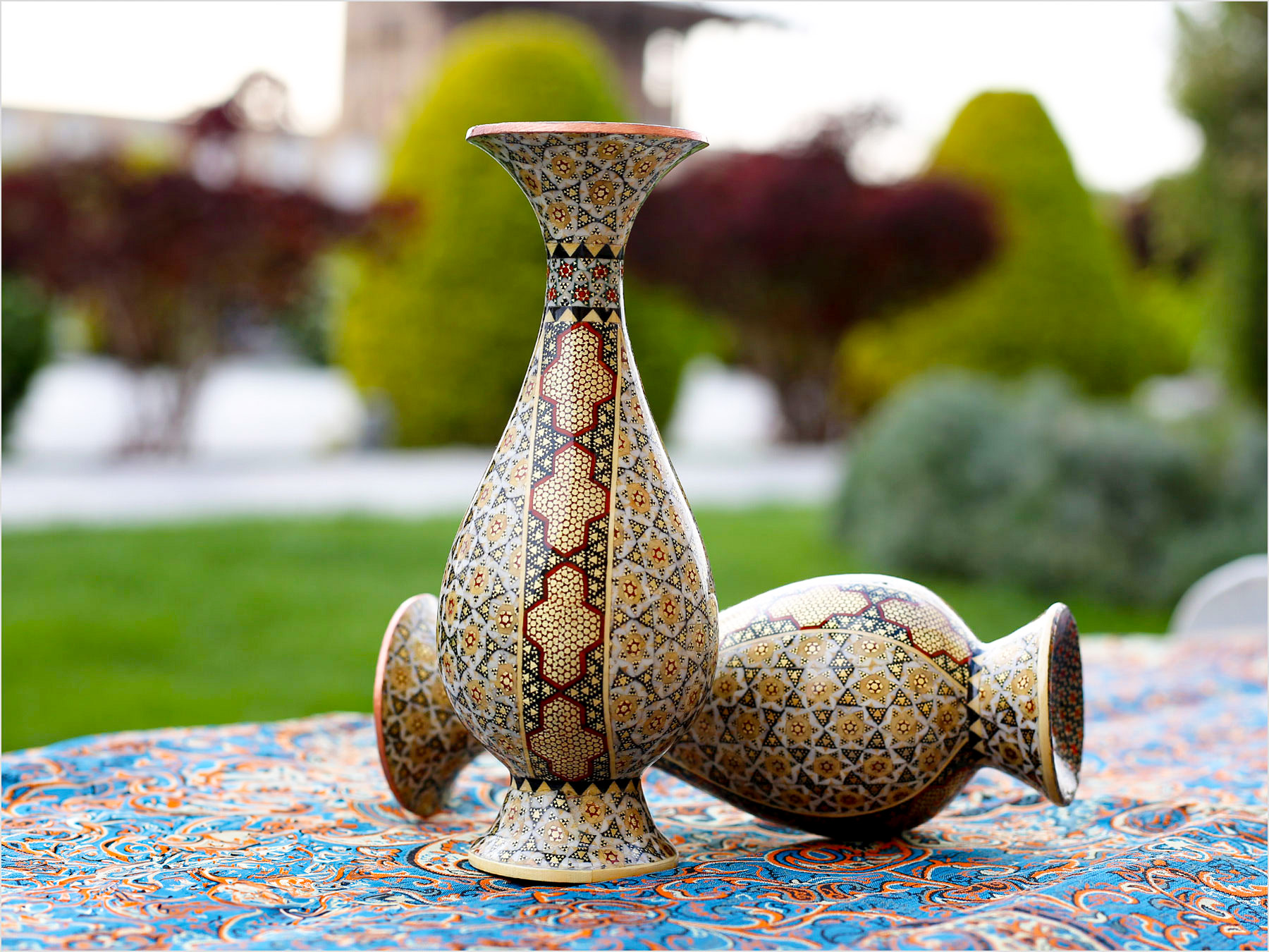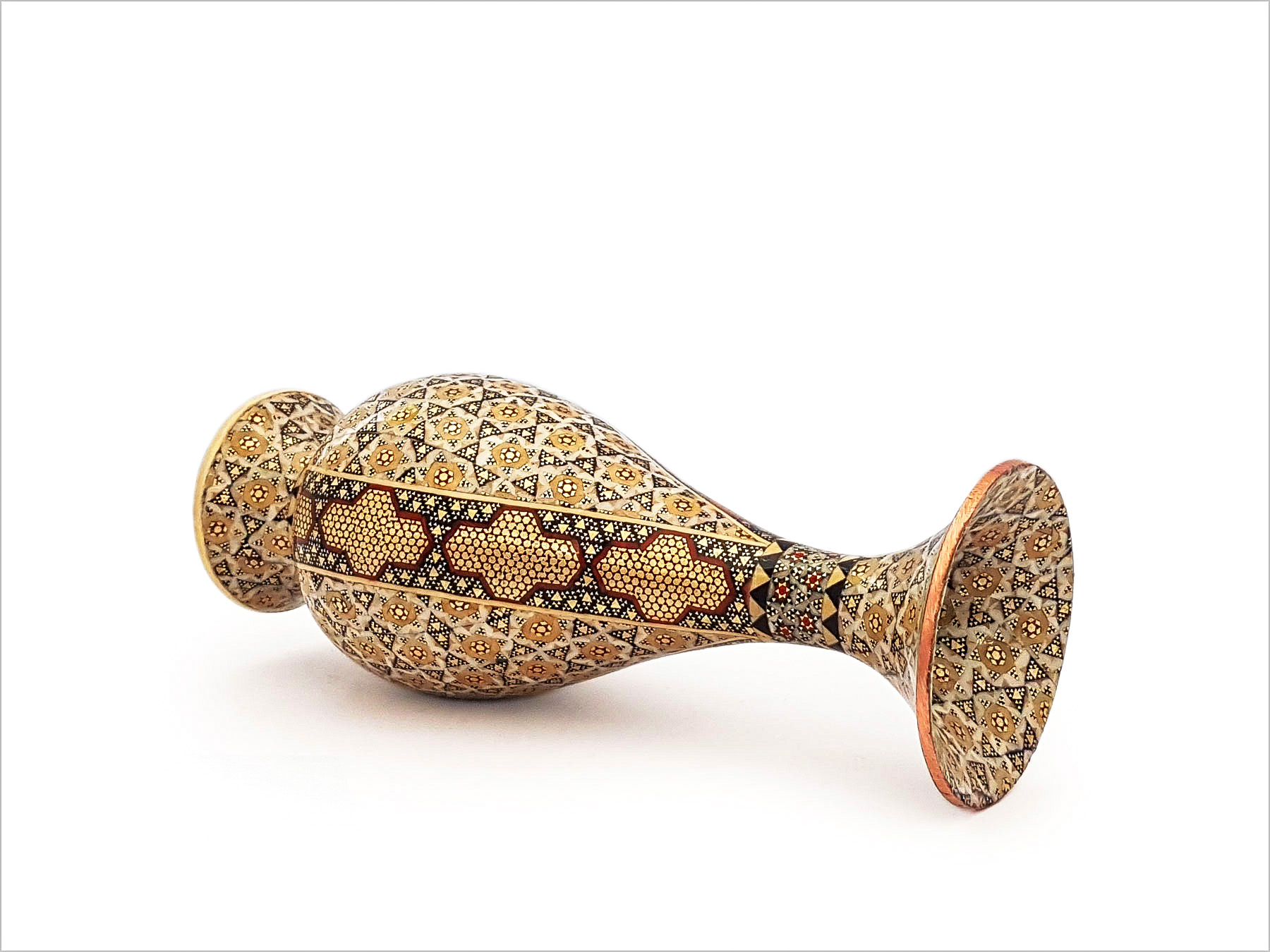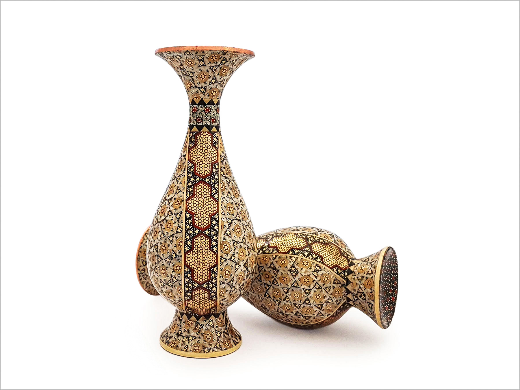 Khatam Kari is one of the most celebrated art forms in Iran, known for its precision and intricate detailing. The creation of these vases involves hundreds of tiny pieces, each carefully arranged and fixed to the surface, demonstrating the exceptional skill and patience of Iranian artisans. The legacy of Khatam Kari dates back centuries, and today, the artisans of Isfahan continue to preserve this extraordinary craft.