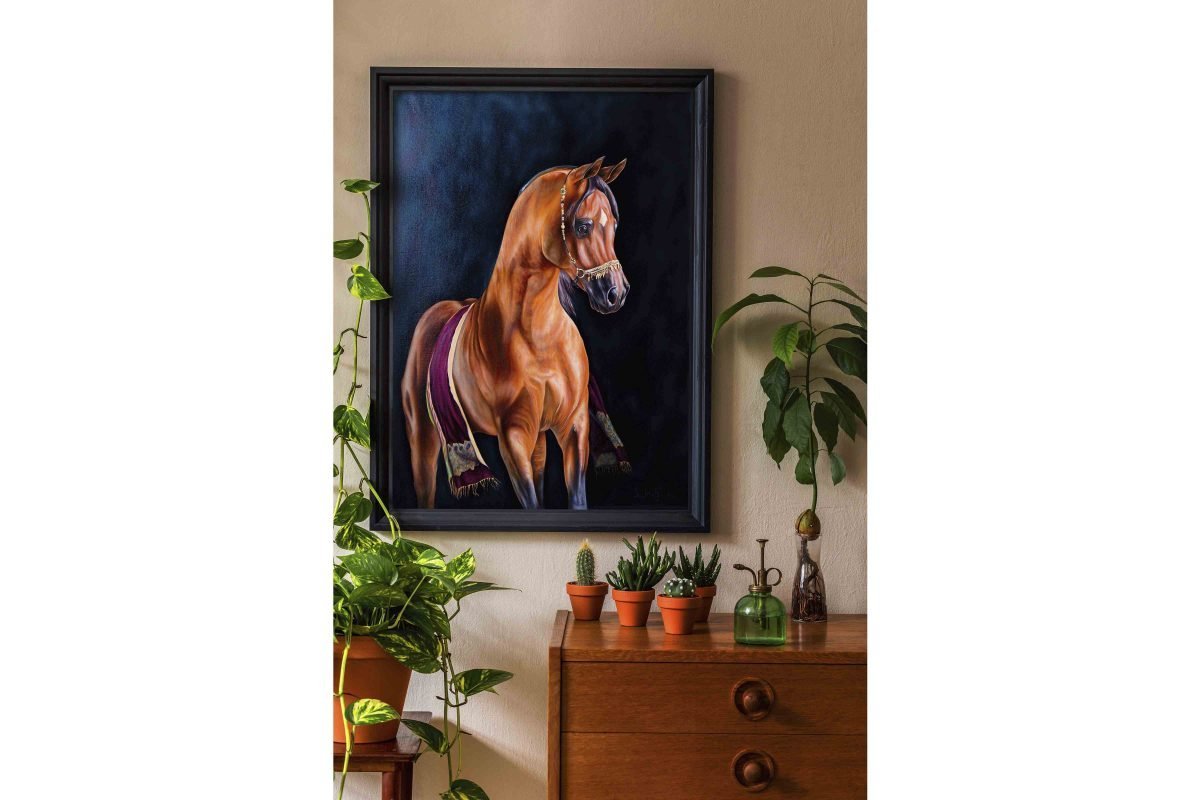 Perfectly sized for display above your mantel or console table, this Arabian shawl horse oil painting brings a touch of exotic elegance to your entrance console or drab walls. The rich colour palette and unique subject matter make this piece a versatile addition to any interior design style, from traditional to contemporary.