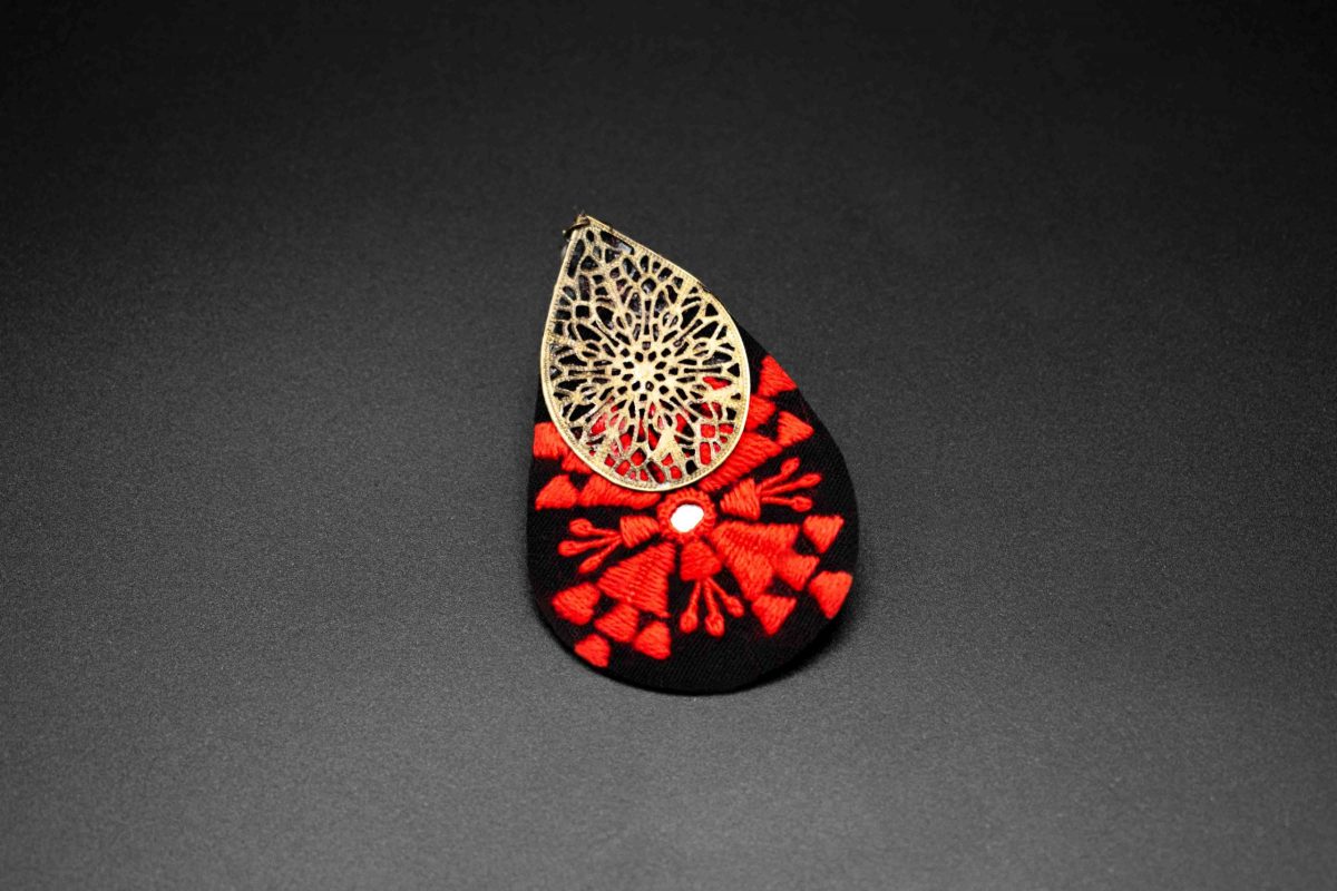 Exquisitely hand-embroidered by our talented Baluchi artisans, these accessories exude a look of elegant bohemian refinement. The intriguing black and red colour palette complements the intricate embroidery, while the eye-catching teardrop shape of both the embroidery and copper sections adds a touch of elegance. At the centre, an adorable tiny mirror gleams, further enhancing the captivating allure of each piece.