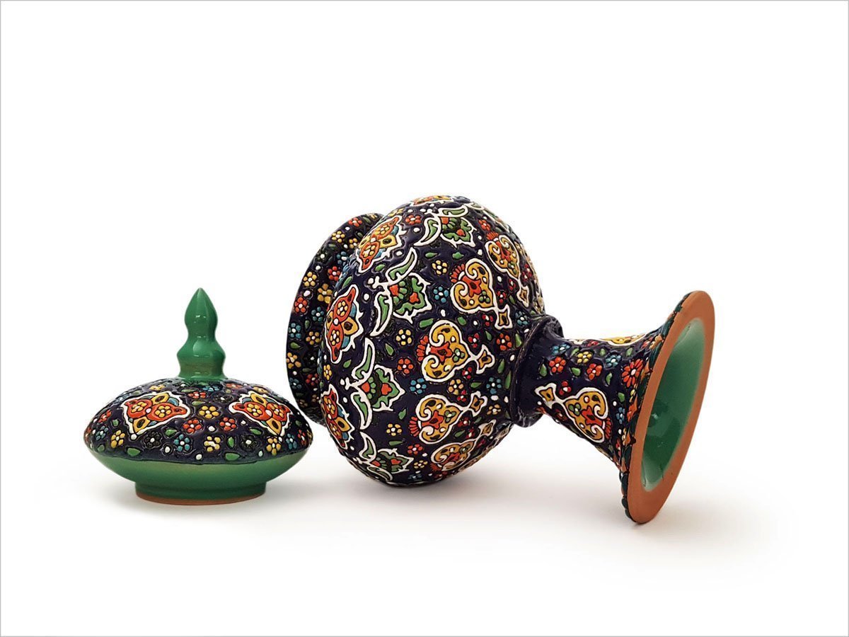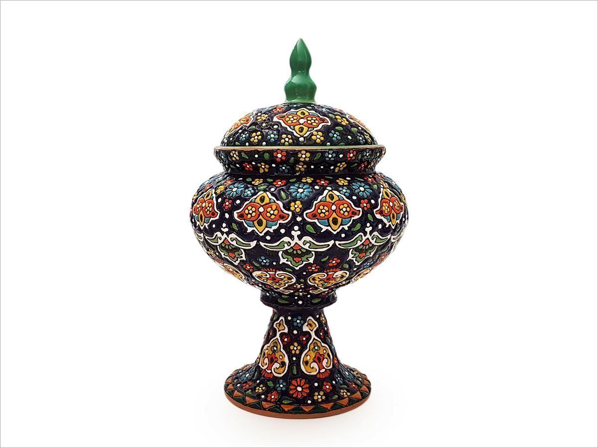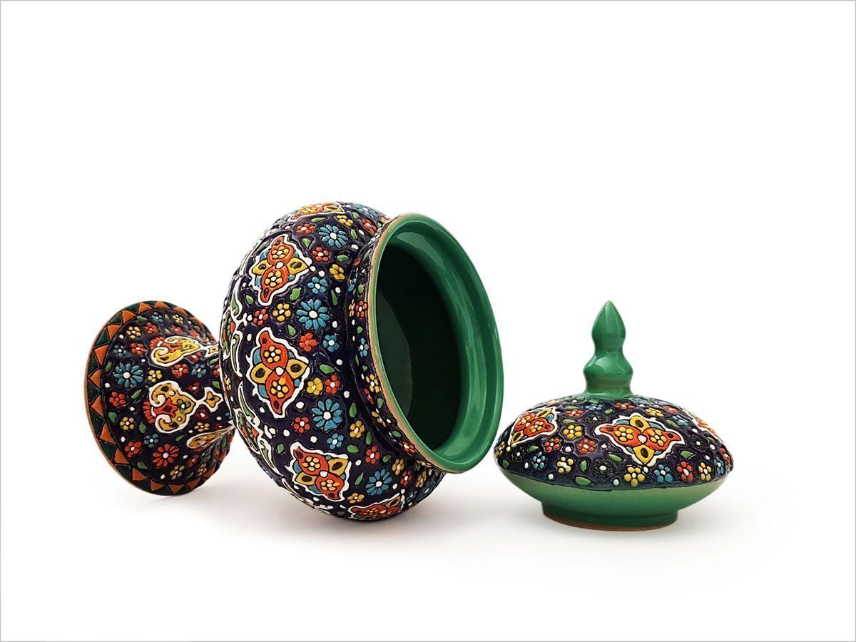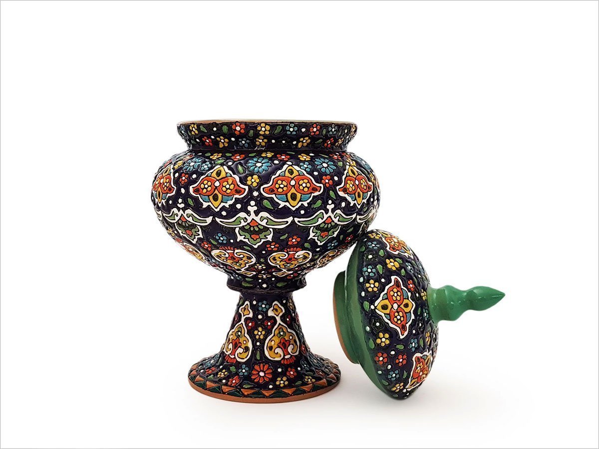Persian Enamel Pottery Candy Pot – Floral