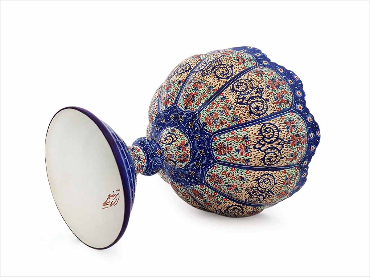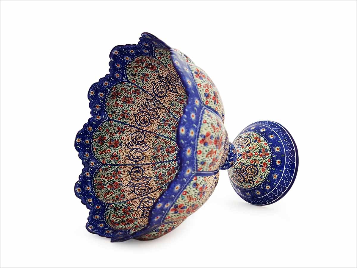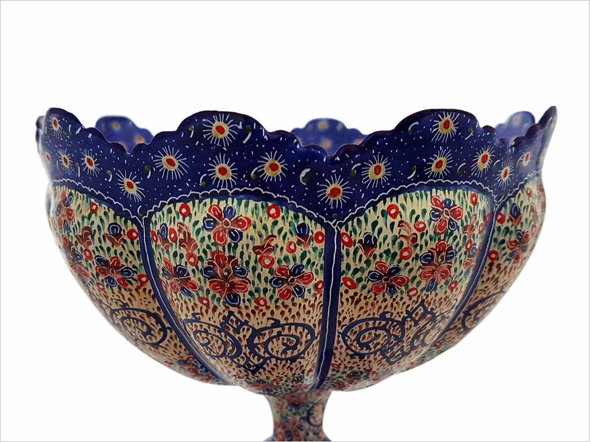 Dive into the heart of Persian artistry with this exquisite enamelled pedestal bowl. Entirely handcrafted by master artisans from Isfahan—a city synonymous with the age-old craft of Minakari (Persian: میناکاری)—this pedestal bowl is a testament to the region’s unrivalled skill and dedication to perfection.