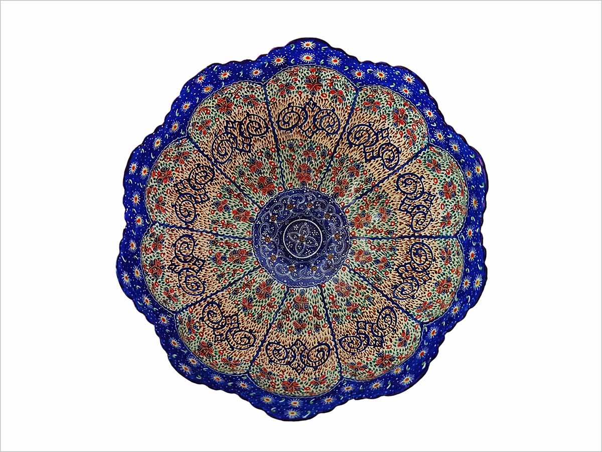 However, the true allure of this pedestal bowl lies in its design. Adorned with iconic Persian floral and foliate patterns, it paints a picture reminiscent of the fabled Persian gardens—a symbol deeply rooted in Persian literature and culture. These gardens, often referred to as earthly paradises, are a metaphor for heaven and a symbol of the intricate beauty and harmony of the universe. The vivacious colours employed in the design mirror the vibrant hues of a blooming Persian garden, serving as a continuous source of inspiration and reflection for poets and artists alike.