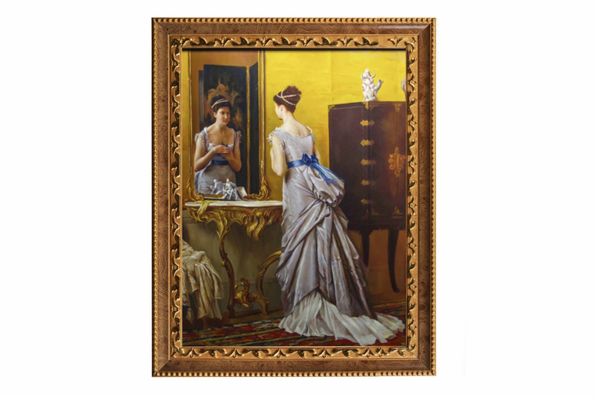 Our museum-quality replica of “Looking Glass” allows you to appreciate the elegance and refinement of this timeless painting. Each detail is carefully crafted, enabling you to fully experience the beauty and artistry of de Jonghe’s work. This captivating piece will elevate your collection and bring a sense of grace and serenity to any space.