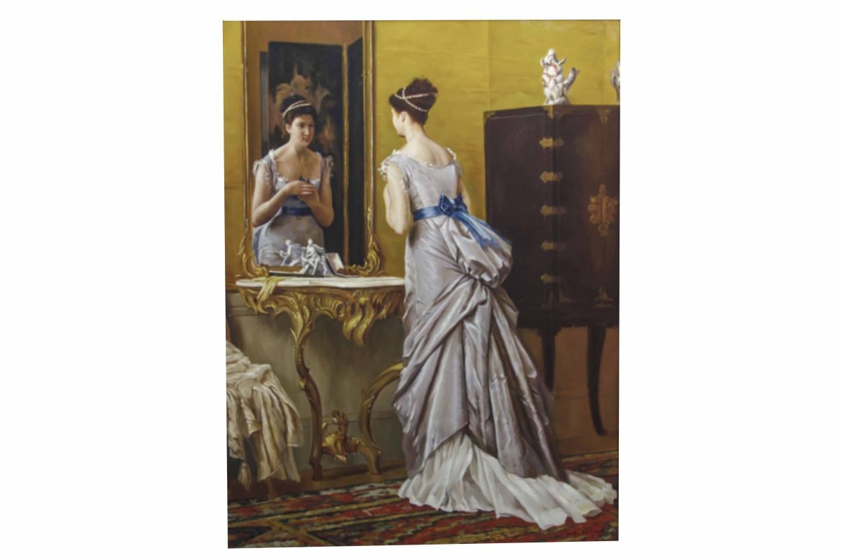 Delve into the captivating world of 19th-century art with Craftestan’s museum-quality replica of “Looking Glass” by the esteemed Belgian artist Gustave Léonard de Jonghe. Our meticulously crafted replica brings the elegance and charm of this timeless painting to life, allowing you to experience the beauty and artistry of the original work. With Craftestan’s commitment to transparency and honesty, you can trust that the replica showcased on our website accurately reflects the quality and artistry you will receive.