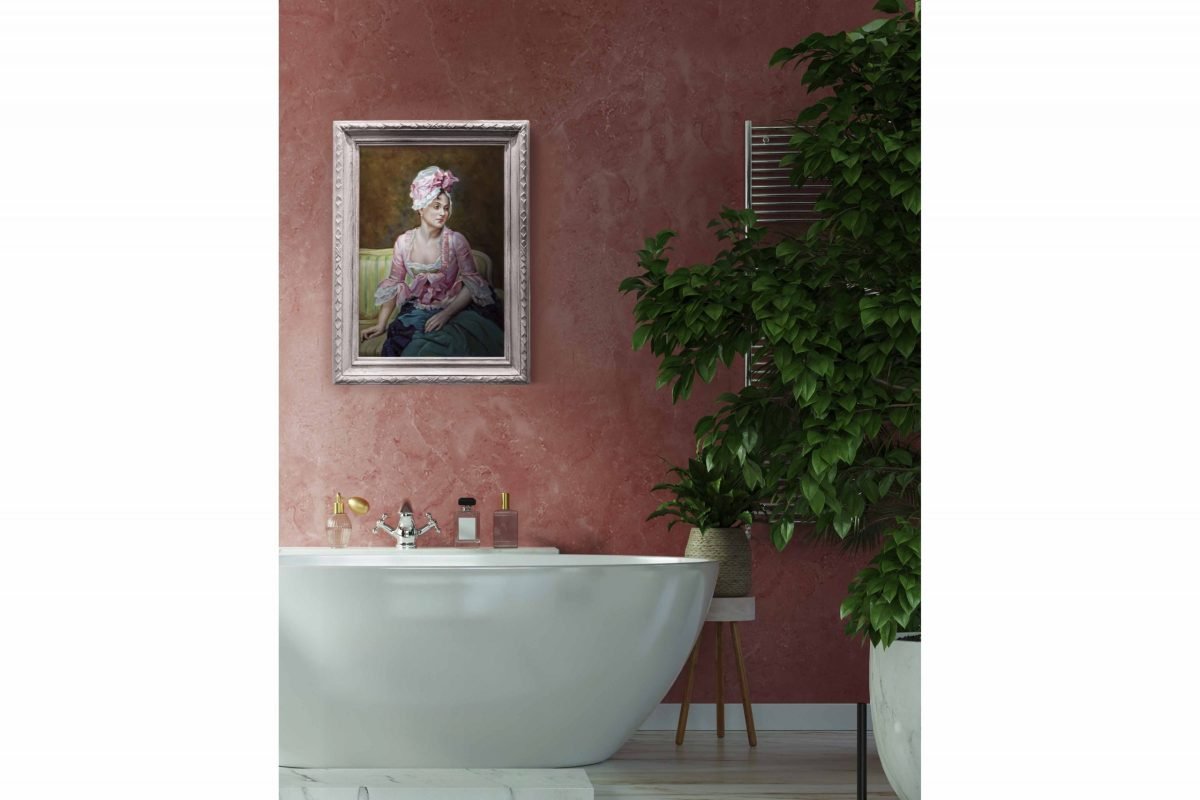 One of the notable features of the original painting is Madrazo’s manipulation of light. In our replica, this is handled with equal finesse. Strategic illumination creates a glowing effect around Aline, lending vitality to the portrait. This delicate interplay between light and shadow introduces depth to the piece, highlighting the three-dimensionality of the subject.